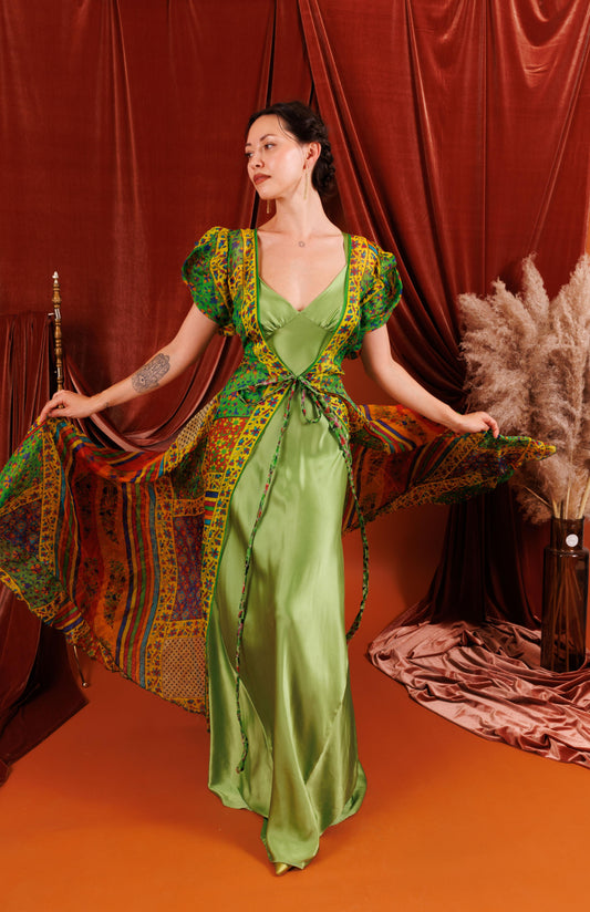 VICTORIA Maxi Duster in Blue with Pink Flowers