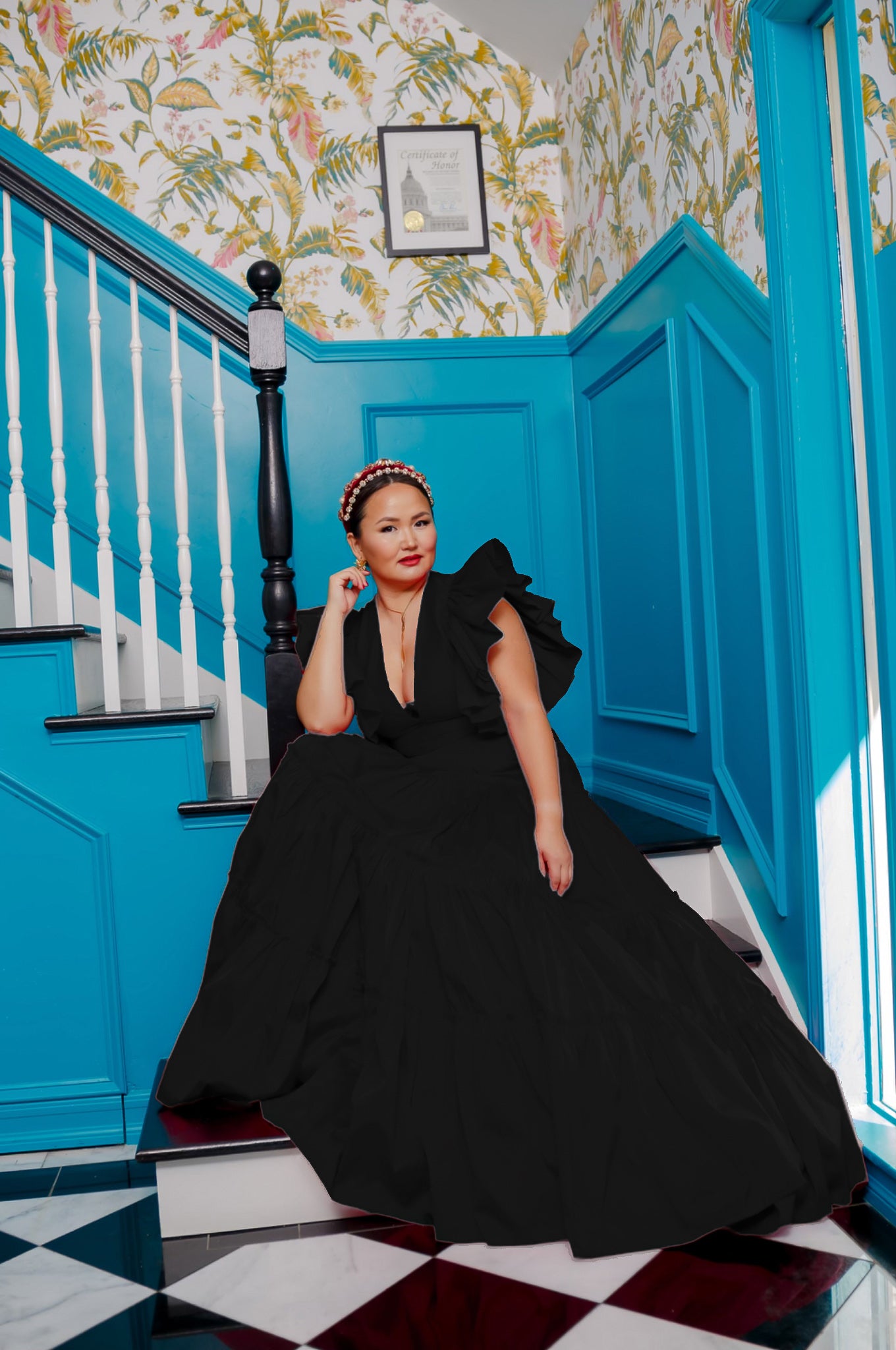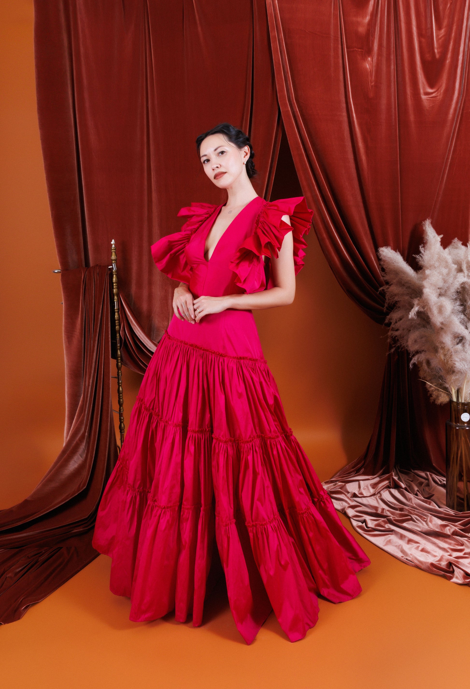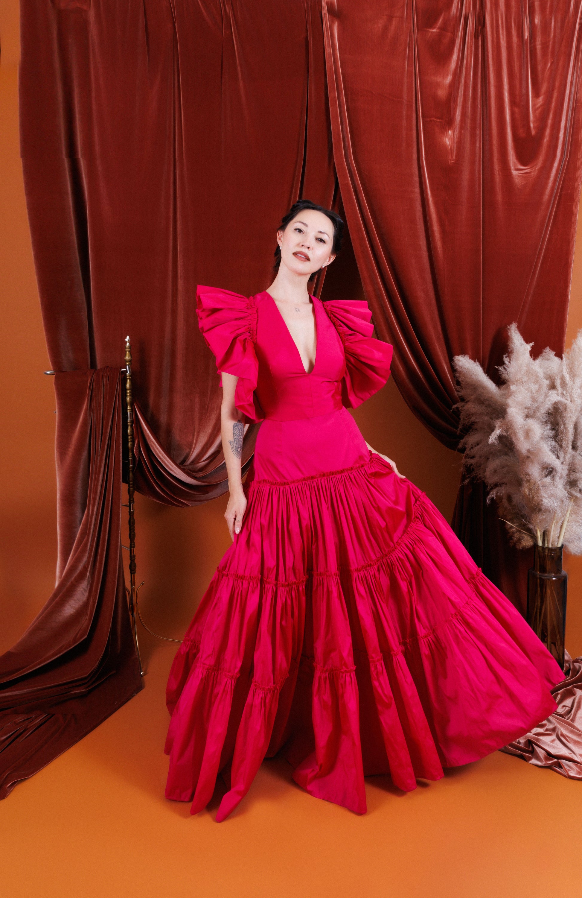 Crafted to blend tailored precision with playful volume, the Camila Dress is a great addition to your wardrobe. Featuring a deep V neckline, this dress perfectly complements a timeless silhouette, making any occasion special.