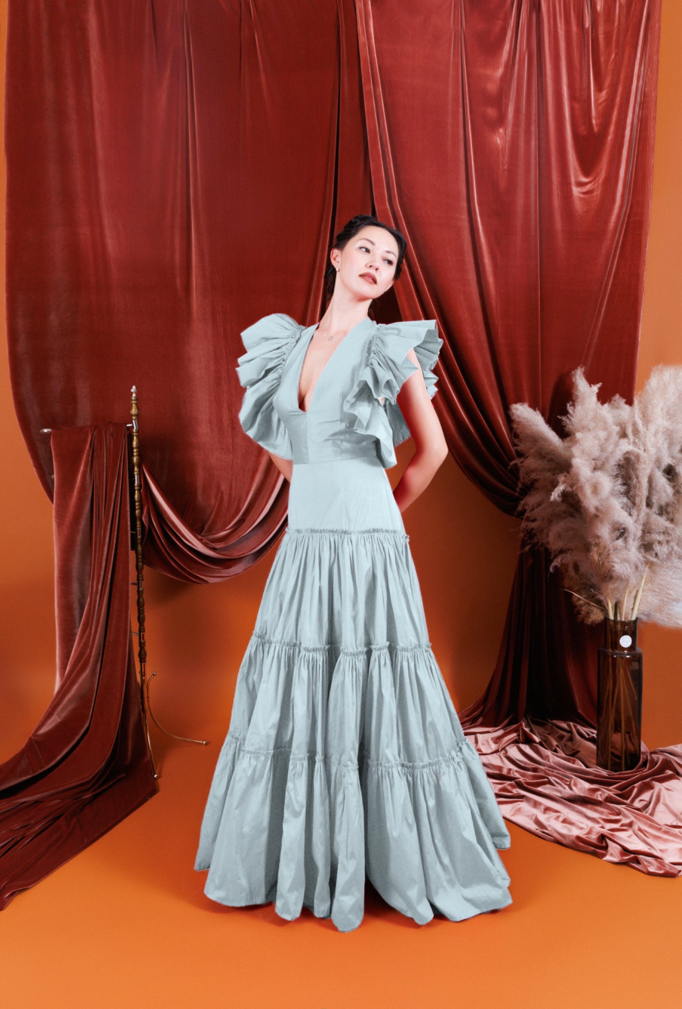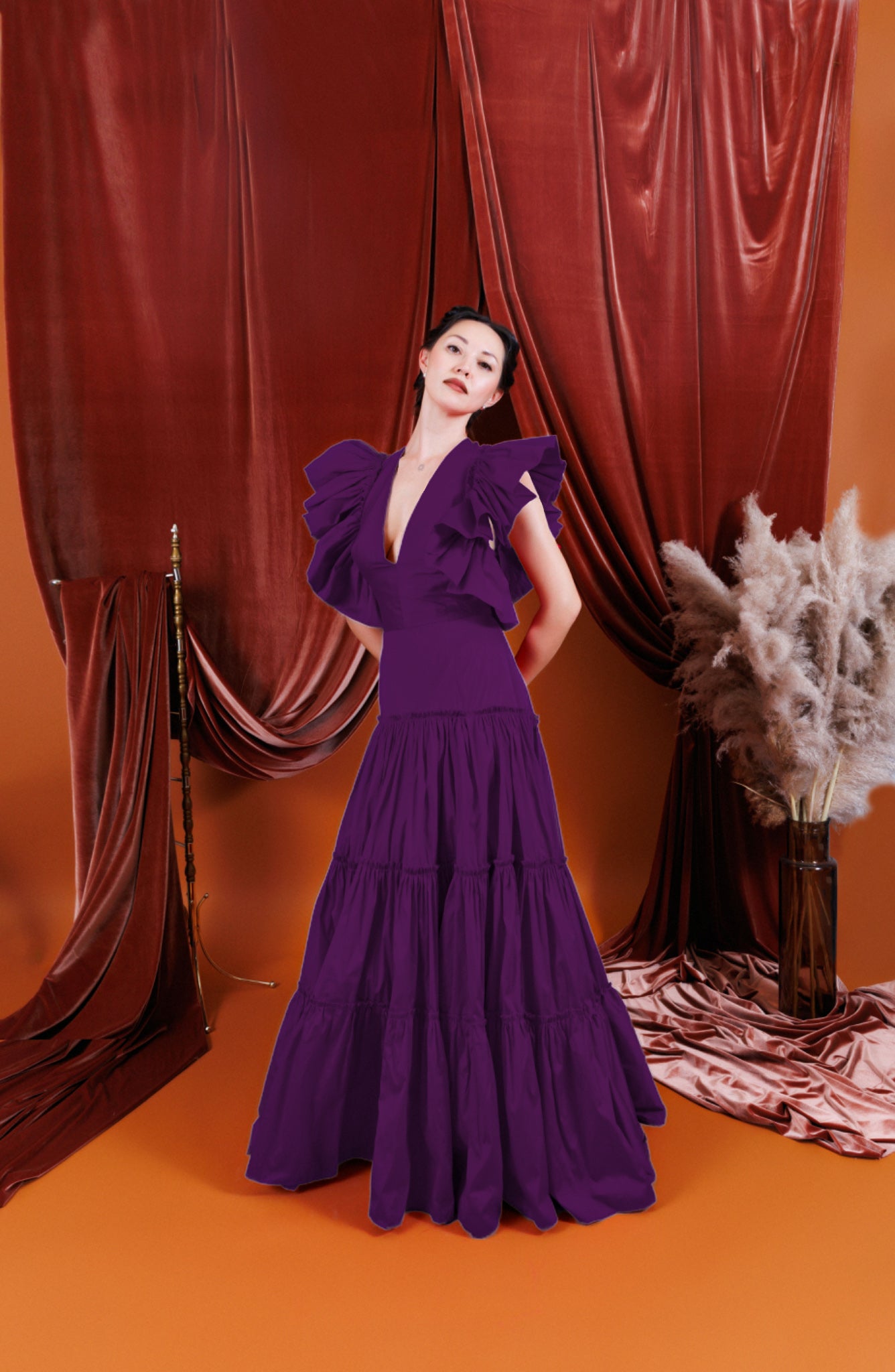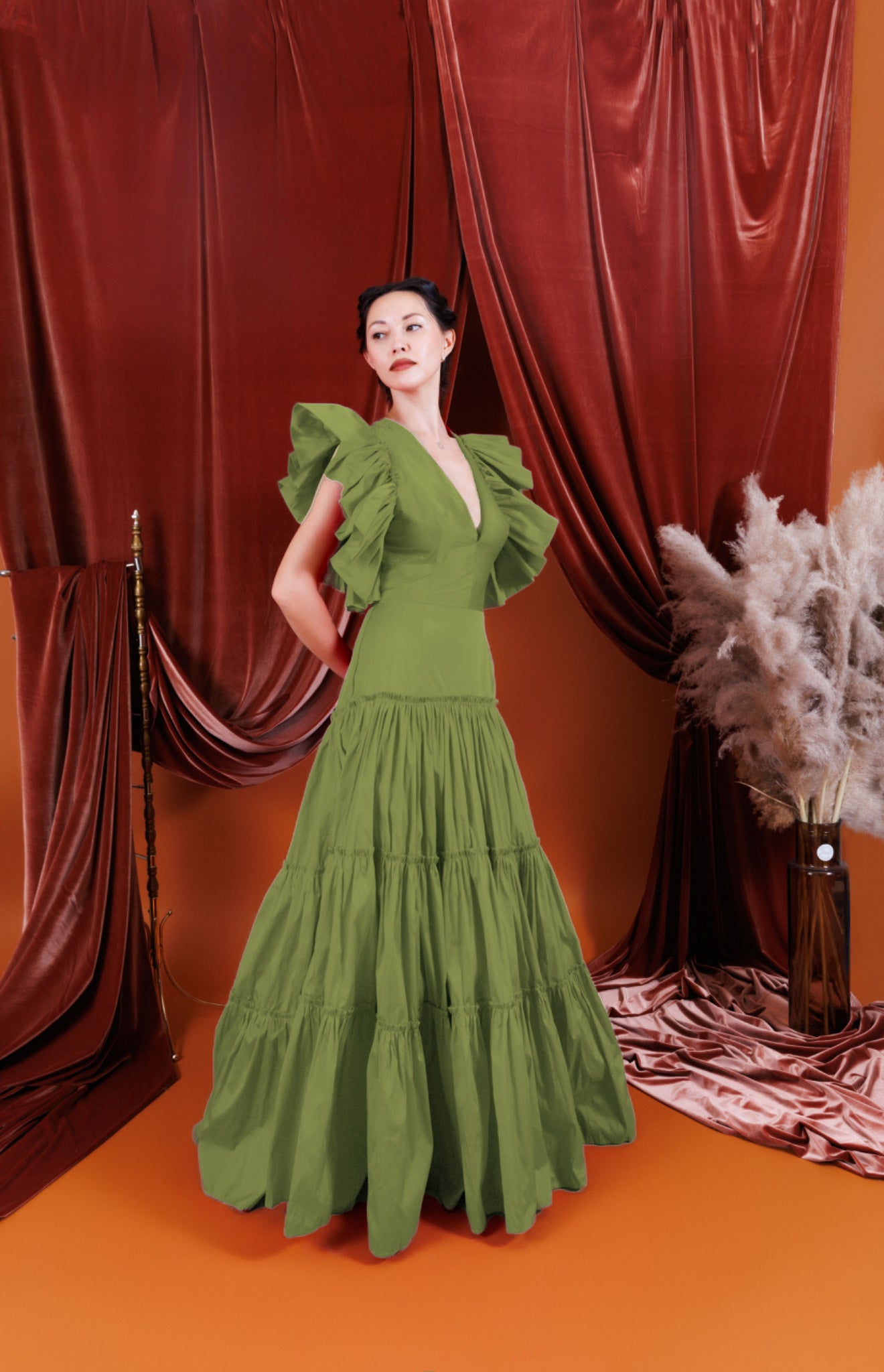 CAMILA V-Neck Dress Maxi with Ruffled Sleeves