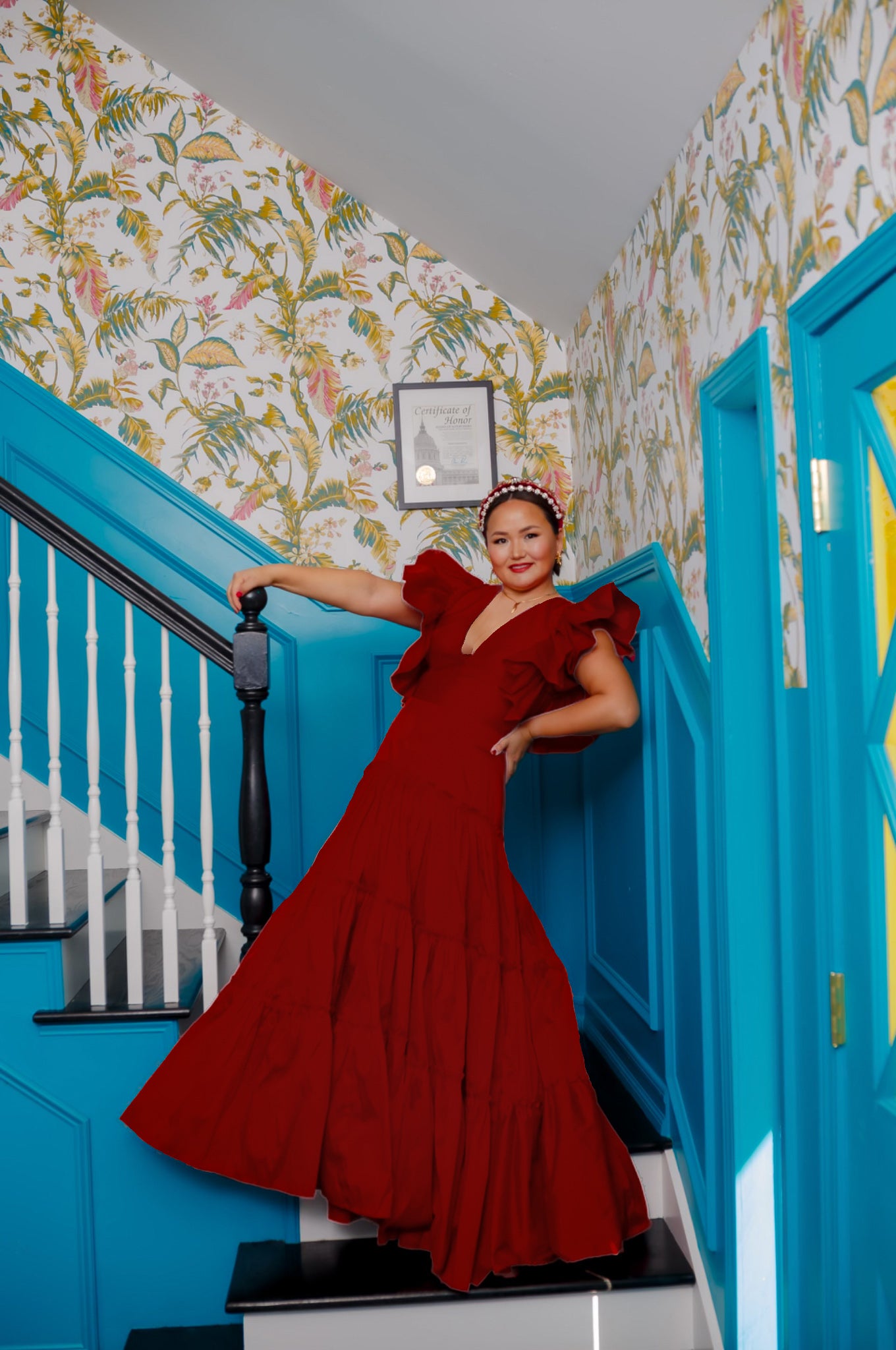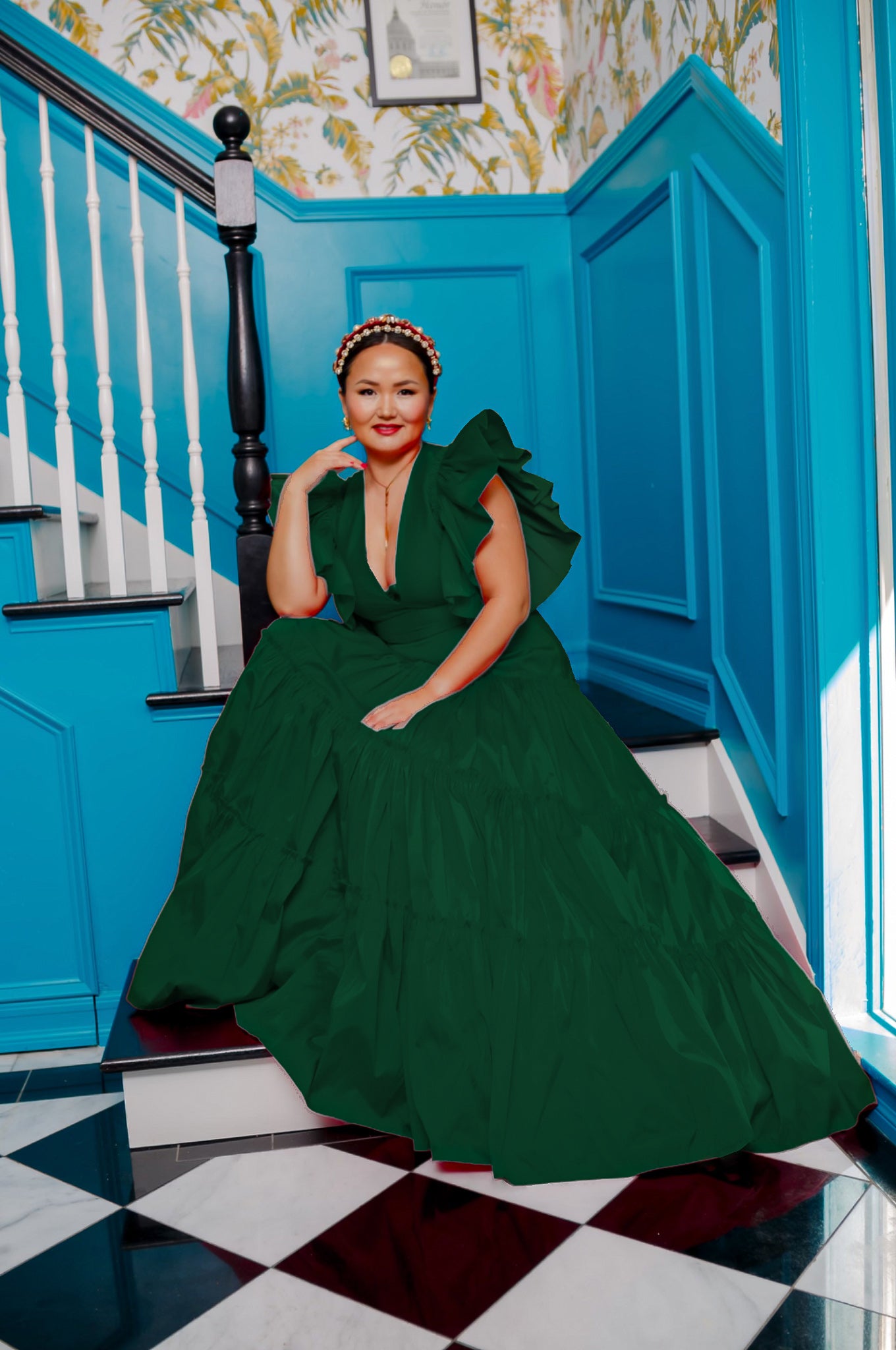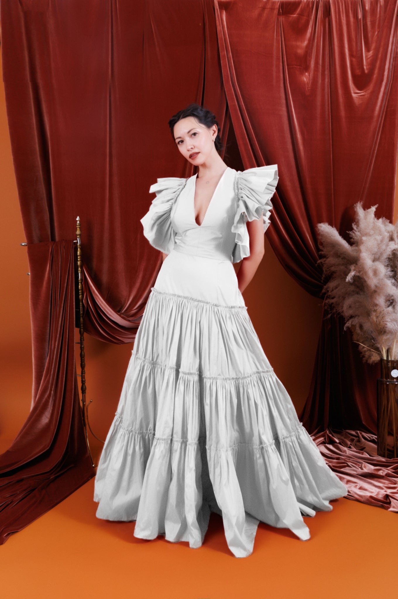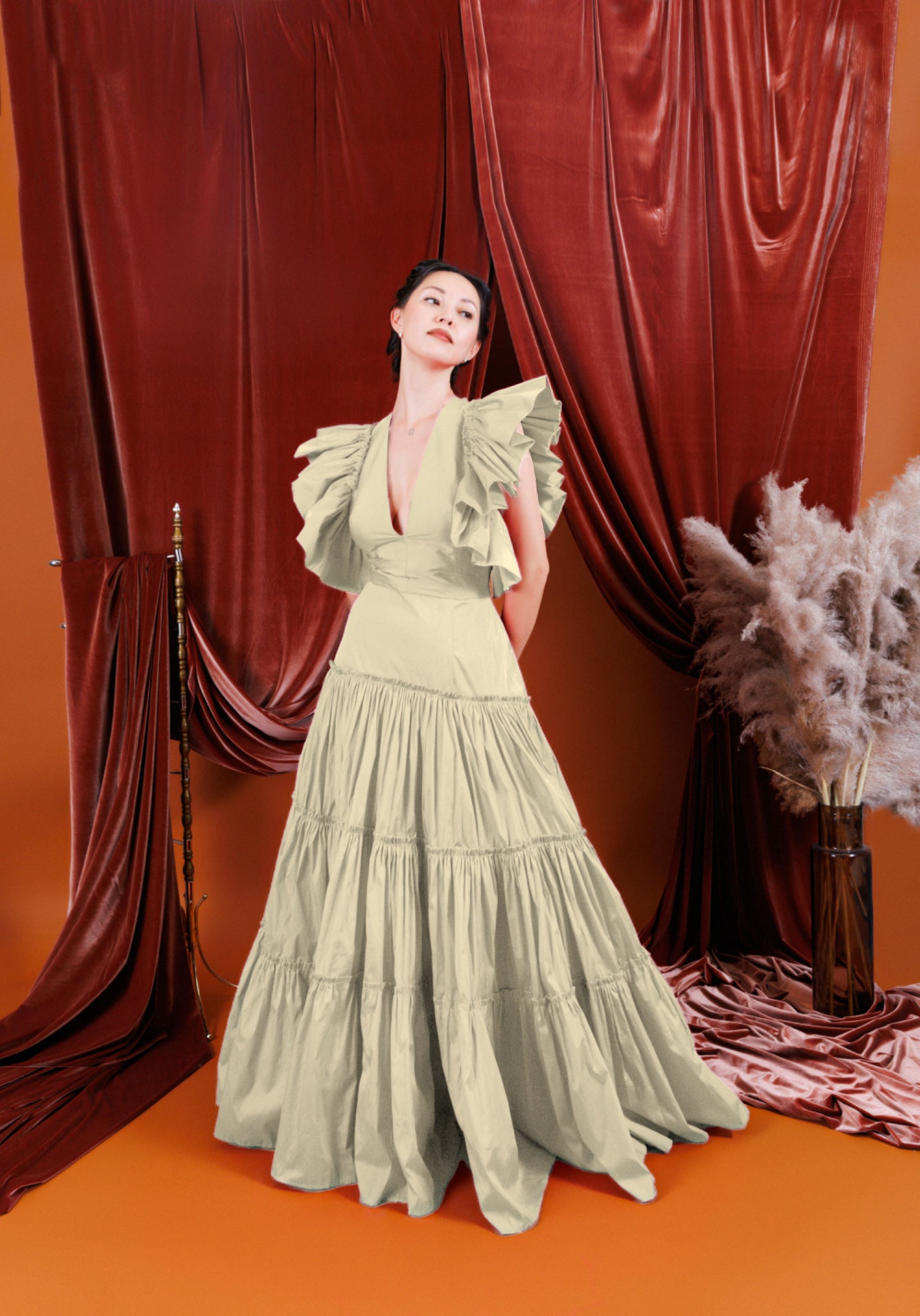 CAMILA V-Neck Dress Maxi with Ruffled Sleeves