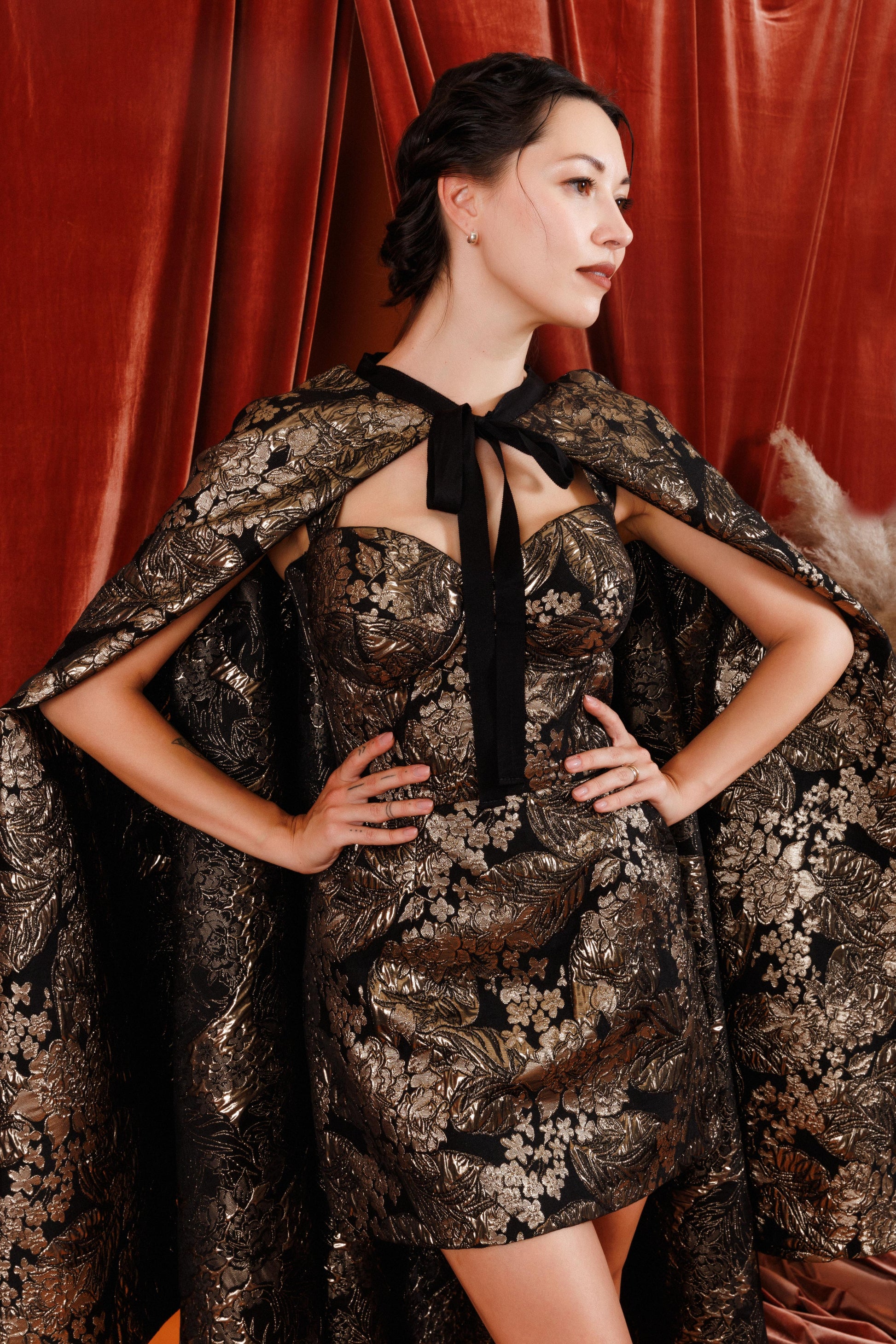 Step into elegance with the Bianca Dress in Mini, a stunning piece that combines style and functionality. This dress features practical pockets, supportive bra cups, and a luxurious gold RIRI zipper at the back. It comes with a matching cape that can be worn as an overlay skirt, adding versatility to your wardrobe. Ideal for any special occasion, the Bianca Dress ensures you stand out with its sophisticated design.