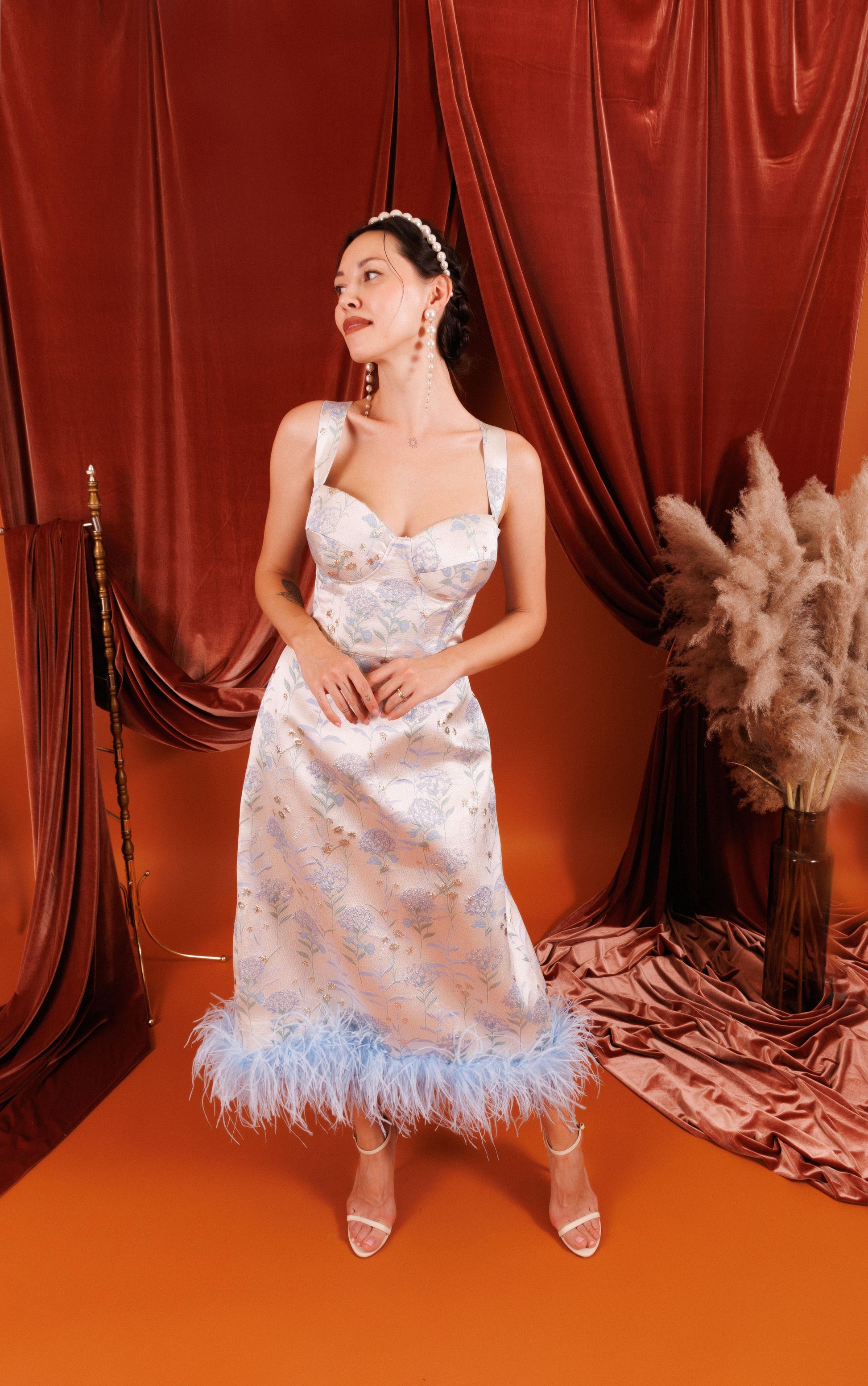 Elevate your elegance with the Bianca Midi Dress in Sky Blue. This sophisticated dress features luxurious ostrich fur detailing, adding a touch of glamour to its timeless silhouette. Designed for both style and functionality, it includes practical pockets, supportive bra cups, and a luxurious gold RIRI zipper at the back. Crafted from a comfortable blend of cotton and polyester, the Bianca Midi Dress ensures you look effortlessly chic while feeling at ease.