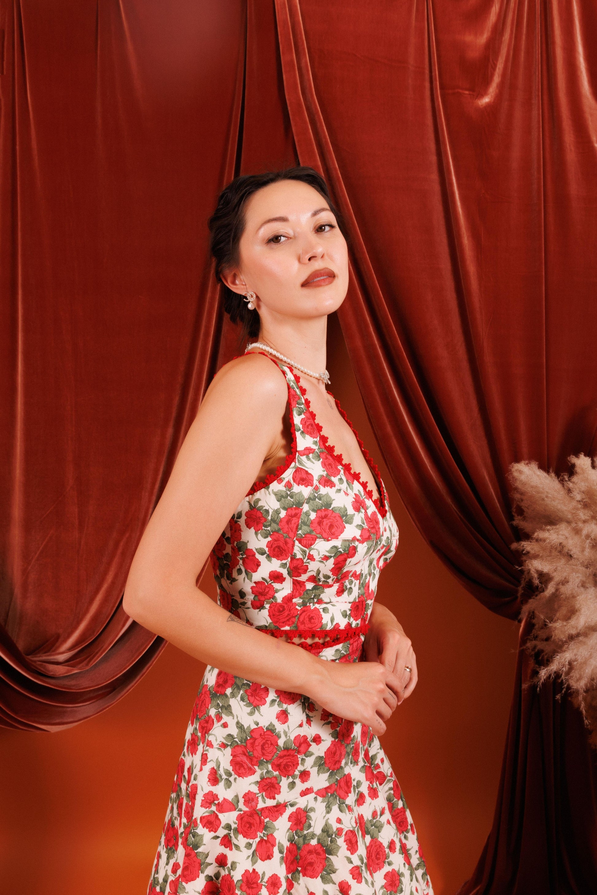 Embrace the beauty of Italian chic with the Cherrie 3-Piece Set, featuring a vibrant floral ensemble. This stunning set includes a sleeveless crop top, a midi skirt, and an under tulle skirt, all crafted for versatile styling. The elegant floral pattern with red flowers adds a touch of sophistication, while the tulle under skirt provides a chic, layered look. Each piece can be worn separately, offering endless outfit possibilities.