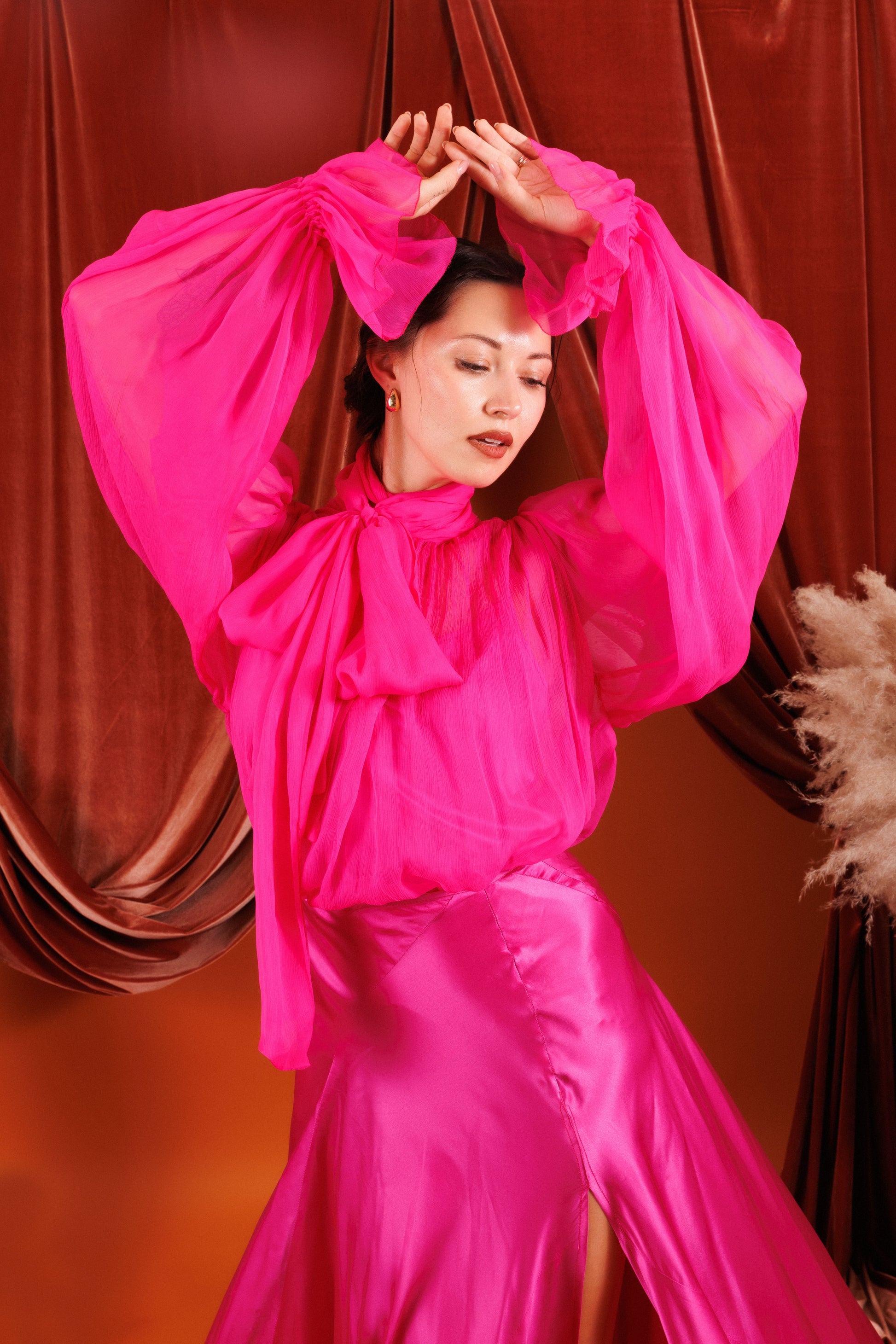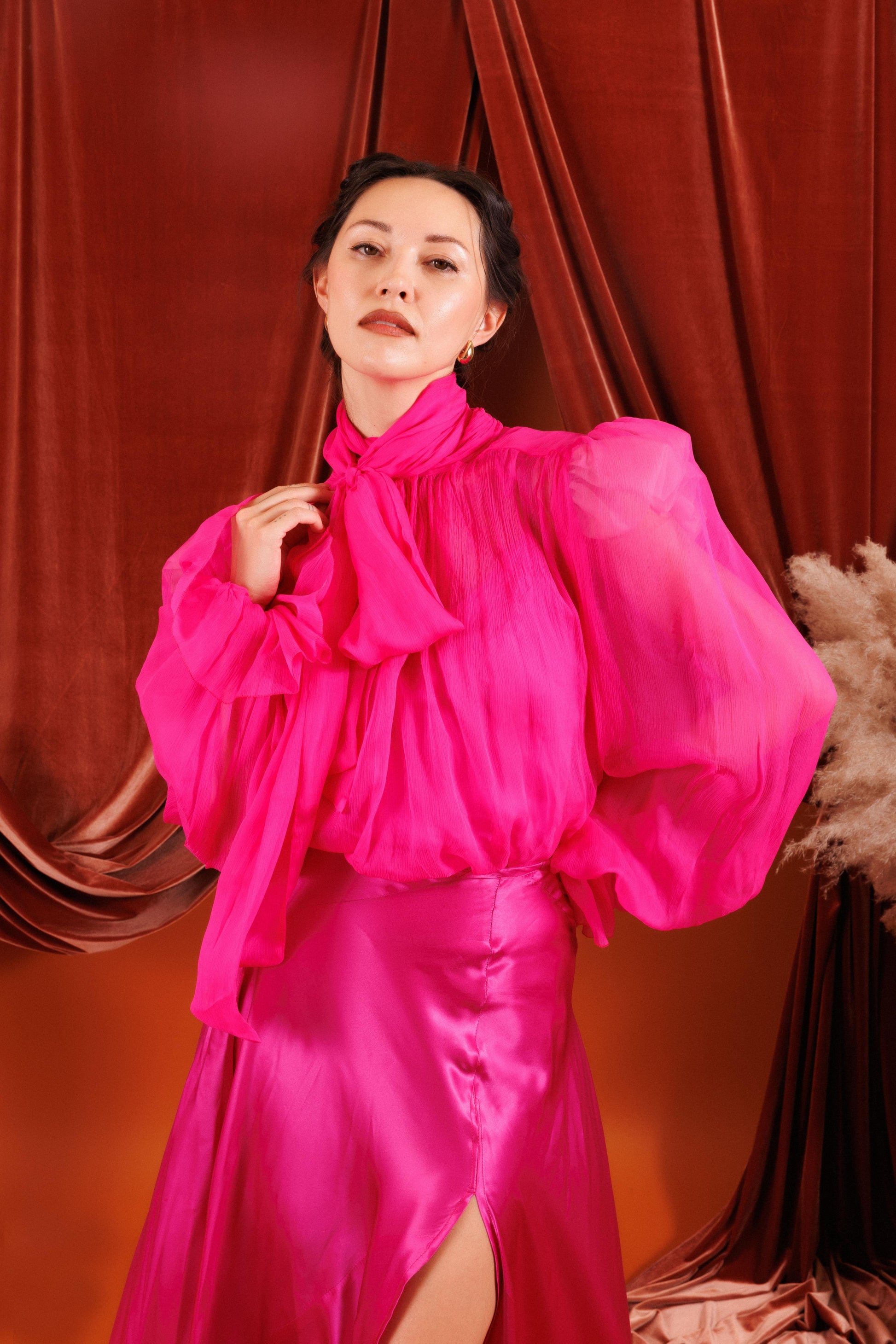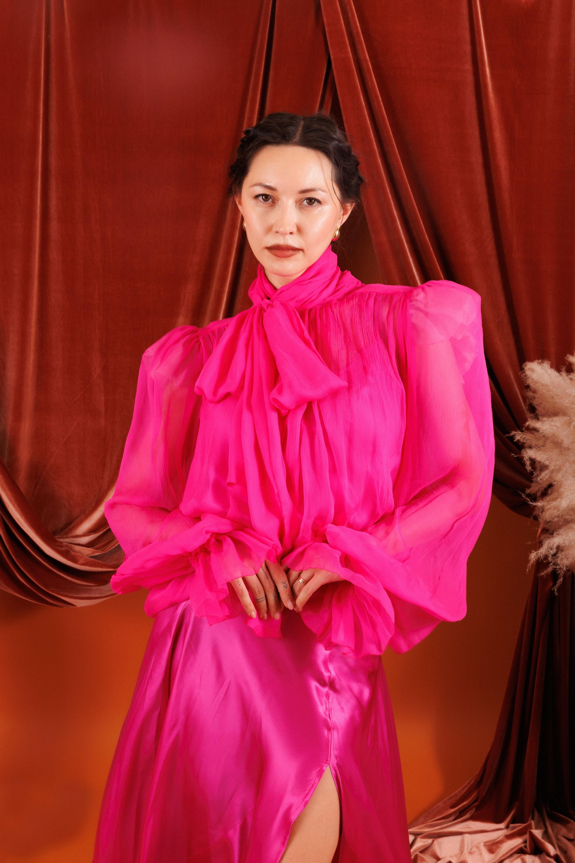 Add a touch of romance and elegance to your wardrobe with the Leticia Long Sleeve Blouse. Crafted from 100% cringed silk chiffon, this flowing, semi-sheer blouse imparts a light and airy feel to any outfit. Perfect for creating memorable and romantic looks, the Leticia Blouse pairs beautifully with a variety of styles. Wear it on its own or layered over a dress for a versatile and stunning addition to your collection.