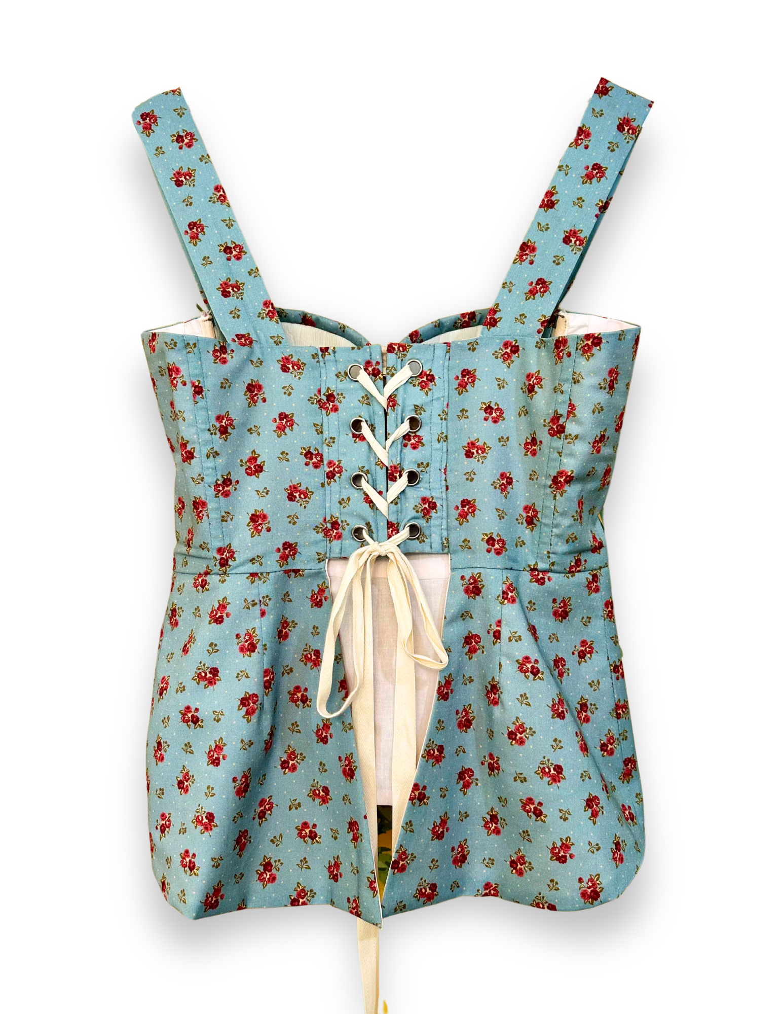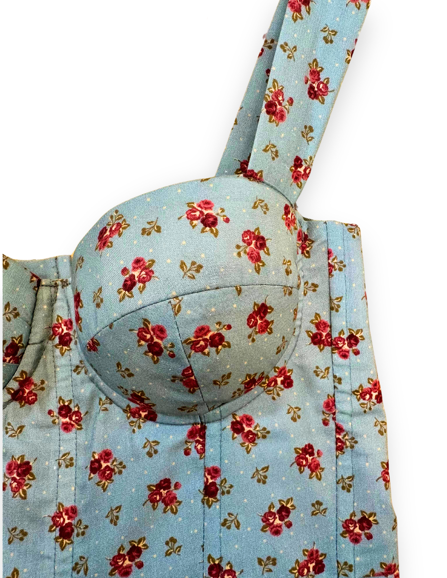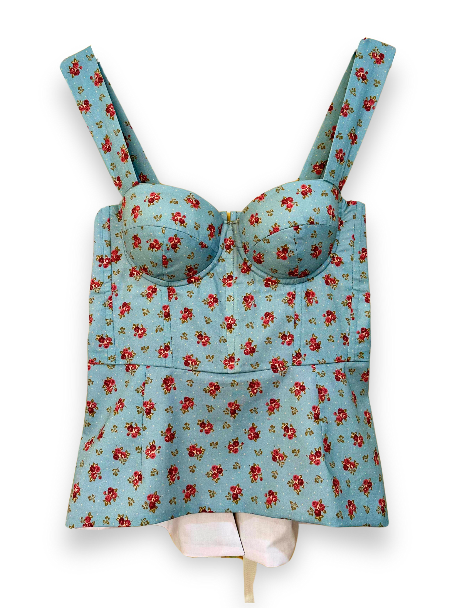 MARTINA Sleeveless Floral Peplum Corset Top in Blue with Roses